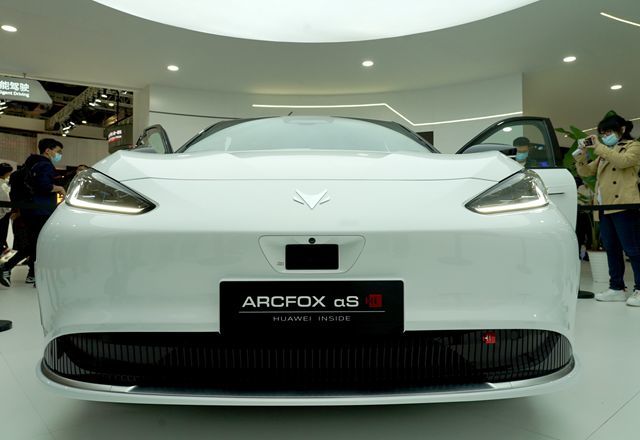 4月19日,華為Huawei ADS高階自動駕駛系統展車在上海國際車展上亮相。新華社圖