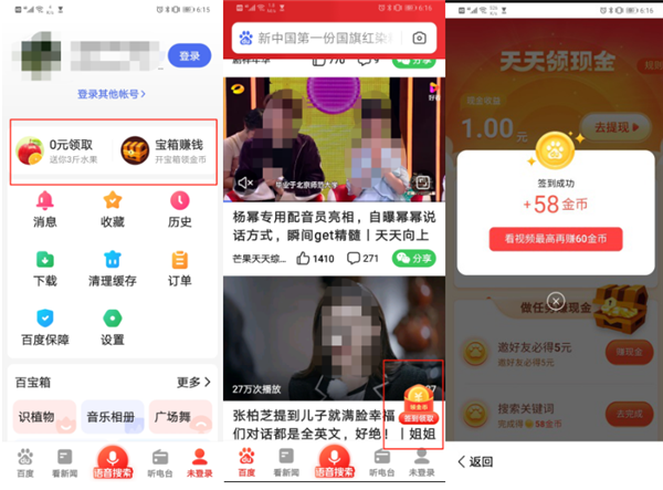 另外,百度作為搜索工具,也在有意“留住”老年用戶,簡化頁面后著重突出了看新聞、聽電臺、以及搜索等功能。同時還添加了0元領(lǐng)水果、簽到領(lǐng)金幣等小游戲,以此增加用戶活躍度和使用時長。