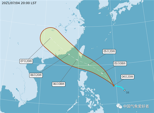 臺(tái)灣地區(qū)氣象部門已升格96W為輕度臺(tái)風(fēng),并發(fā)布臺(tái)風(fēng)預(yù)報(bào)。來自cwb