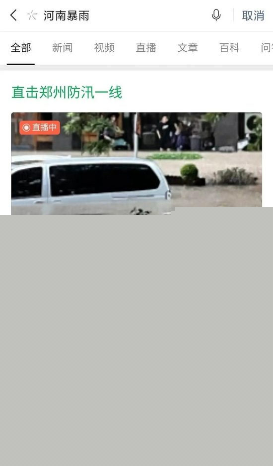 在微信搜索框中搜索“河南暴雨”“鄭州”,可以看到媒體官方賬號在視頻號直擊鄭州防汛一線的直播,也能根據微信梳理的時間線了解汛情最新信息;受災的人在微信和救援者共享位置;河南地區的各級指揮部門在微信群里發送通知,提醒人們注意防汛;救援志愿者自發在微信朋友圈轉發可提供的救助信息。