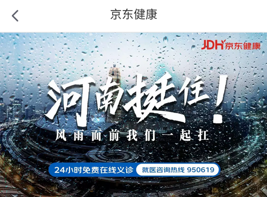 與此同時,位于鄭州的京東之家、京東專賣店等線下門店,也已為當地市民提供緊急避險場所,幫助當地群眾渡過汛情難關。此外京東健康緊急為河南地區用戶開啟免費在線問診服務專區,并開通24小時就醫咨詢服務專線,盡可能滿足當地受災群眾緊急就醫需求。