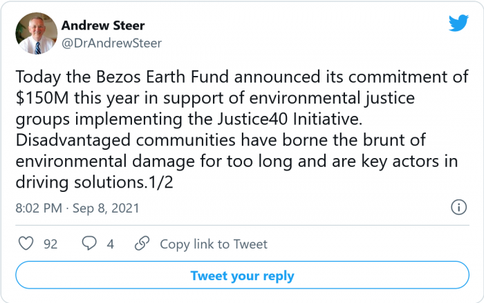 此前,貝佐斯因為沒有為處于氣候危機前線的社區撥出足夠的資金而遭到活動人士的抨擊。在去年的第一輪捐贈中,該基金向環保組織撥款 7.91 億美元。其中大部分資金都流向了大型環保組織,包括世界野生動物基金會(WWF)和環境保護基金會(EDF),這些組織的資金比注重氣候正義的組織更雄厚。