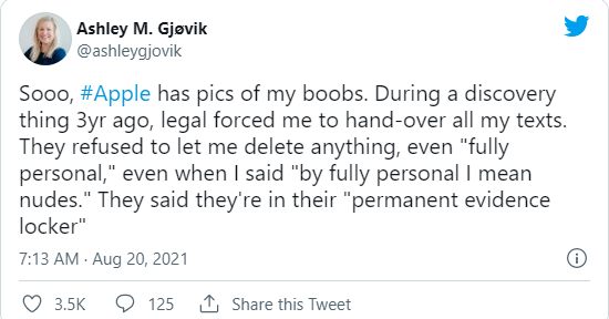 Gjøvik 表示,當(dāng)其 3 月份開(kāi)始提出工作場(chǎng)所安全問(wèn)題時(shí),立即就面臨報(bào)復(fù)和恐嚇。她還表示面臨著來(lái)自她的經(jīng)理和團(tuán)隊(duì)成員的騷擾和欺凌。最近,她提出蘋(píng)果公司搜索和監(jiān)視員工工作手機(jī)。她在推文中寫(xiě)道:“公司有我的裸照。在 3 年前的一次調(diào)查中,法律部門(mén)強(qiáng)迫我出示所有聊天記錄。就連那些完全私密的也不讓我刪除,甚至當(dāng)我說(shuō)‘私人等于個(gè)人裸照’時(shí)他們也不為所動(dòng),還說(shuō)這些都在他們的 ‘永久證據(jù)柜’里。”