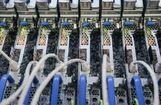 但是,微軟在沙漠地區的數據中心,在那里缺水是一個更大的問題。為了使其在這些炎熱和干燥的氣候中的水足跡降至零,微軟計劃采用一種新的方式來冷卻服務器,即將它們浸泡在基于碳氟化合物的液體中。當服務器工作時,它們產生的熱量使液體在達到華氏 122 度(攝氏 50 度)時沸騰。沸騰的液體將熱量從服務器上移開,然后變成上升的蒸氣。蒸汽碰到冷卻的水箱蓋子,凝結,然后降回水箱中。這個過程被稱為兩相液體浸泡,創造了一個閉環冷卻系統,減少了水和電的使用,同時得到了冷卻效果。