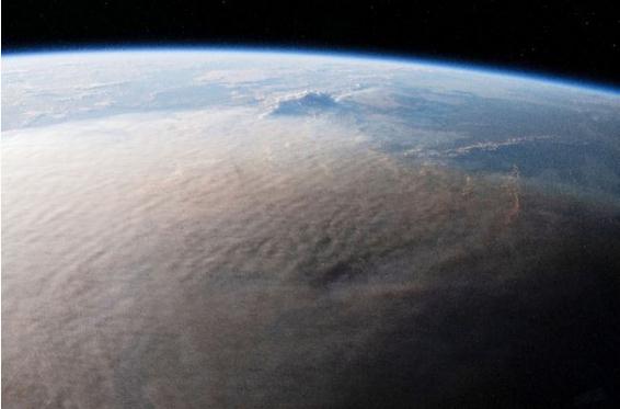 根據(jù) NASA 地球觀測(cè)站的數(shù)據(jù),湯加火山噴發(fā)致使大量火山物質(zhì)、氣體與水蒸氣進(jìn)入高空形成巨大云團(tuán),噴發(fā)至高空 40 公里處,可能高達(dá) 50 公里,引發(fā)破壞性的海嘯波。國際空間站(ISS)上的一名宇航員在太空拍攝到了南太平洋上空火山灰的照片。