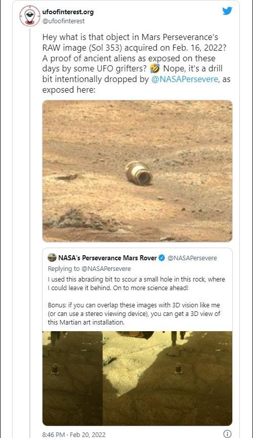 UFO of Interest 本周早些時候強調了最近的漫游車圖片,并追蹤了該物體背后的故事。