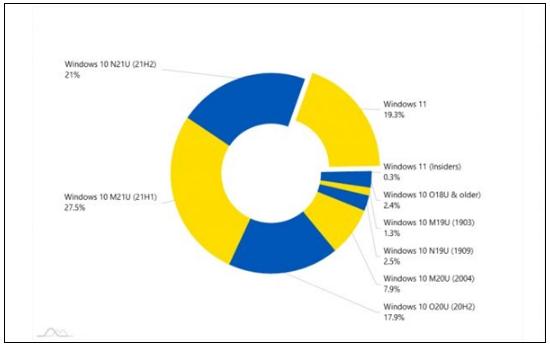 調研機構AdDuplex給出的最新數據顯示,Windows 11現在已經在19.3%的PC上安裝,還有0.3%的PC在運行Insider版本,其增速并沒有放緩。