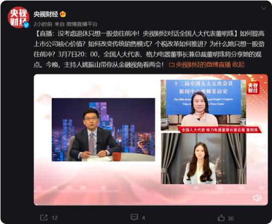 全國人大代表、格力電器董事長兼總裁董明珠接受了央視財經的采訪。對于是否考慮退休生活,董明珠回應稱:“沒考慮,因為現在不是考慮這個事的時候,我一考慮就懈怠了。”