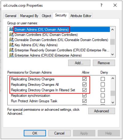 要執行 DCSync 攻擊,我們需要對域對象具有以下權限: