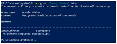 假設我們已經獲得了屬于 Domain Admins 組成員的用戶賬戶。在我們的實驗室中,我們有一個名為 storagesvc 的用戶,它是 Domain Admins 組的成員,如下面的屏幕截圖所示。