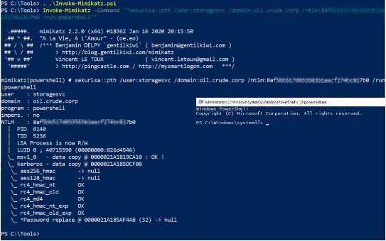 所以我們現在可以使用 Invoke-Mimikatz PowerShell 腳本執行 OverPass-The-Hash 攻擊,并使用 storagesvc 用戶的權限啟動一個新的 PowerShell 控制臺: