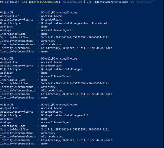 上述查詢中提到的 GUID 是執行 DCSync 攻擊所需的 Replication 權限的 GUID。