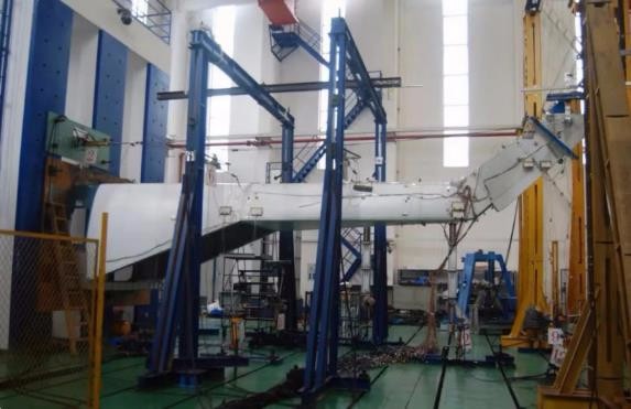 據介紹,該試驗旨在考核 AC313A 直升機過渡段和尾段以及用于安裝尾減速器的飛機結構在飛行載荷下的靜強度,驗證 AC313A 直升機過渡段和尾段對《運輸類旋翼航空器適航規定》相關條款的符合性,只有通過試驗驗證了結構靜強度、剛度、損傷容限、環境影響因子等結構完整性滿足設計要求,才能確保首飛安全。