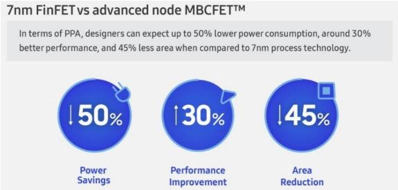 三星表示,該工藝將實現 30% 的性能提升、50% 的功耗降低以及高達 80% 的晶體管密度(包括邏輯和 SRAM 晶體管的混合)。不過,三星的性能和功耗的實際組合將如何發揮作用還有待觀察。