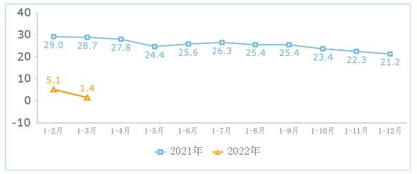 研發(fā)經(jīng)費加速增長。一季度,我國規(guī)模以上互聯(lián)網(wǎng)企業(yè)共投入研發(fā)經(jīng)費 177.5 億元,同比增長 8.4%,增速較 1-2 月份提高 11.2 個百分點。