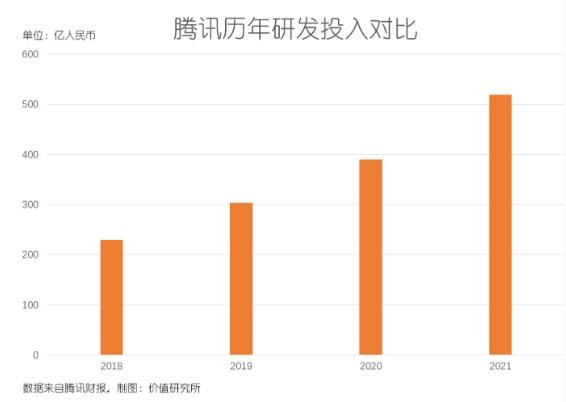數(shù)據(jù)顯示,2021 財(cái)年騰訊研發(fā)投入達(dá)到 18 億元,同比增長(zhǎng) 33%。拆分到各個(gè)季度,研發(fā)支出的同比增速都在 30% 以上,整體投入較 2018 年接近翻倍。此外,騰訊研發(fā)團(tuán)隊(duì)規(guī)模也是不斷擴(kuò)大,截止去年年底研發(fā)人員總數(shù)同比增長(zhǎng) 41%,新增研發(fā)項(xiàng)目 6000+,較 2020 年增加 51%。