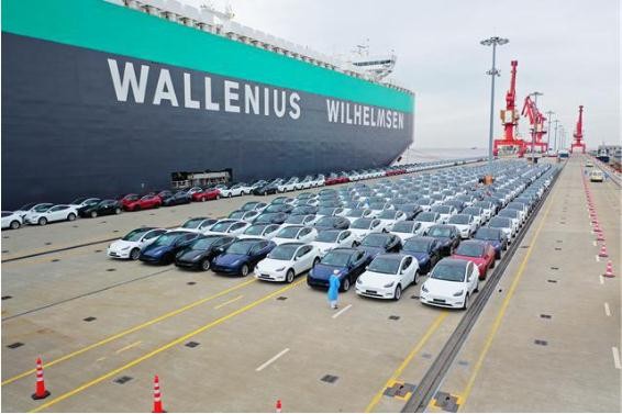 近一周來,已有兩批裝滿特斯拉電動車的整船運往歐洲等地,總共出口約 9000 輛。