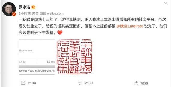 6 月 13 日消息,12 日晚間,羅永浩正式宣布“離開”交個朋友管理層,同時退出新浪微博等社交平臺。