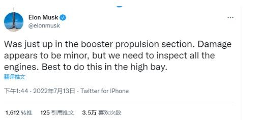 馬斯克此前就表示,SpaceX 把超級(jí)重型助推器運(yùn)回高艙,對(duì)搭載的 33 臺(tái)火箭發(fā)動(dòng)機(jī)進(jìn)行更仔細(xì)檢查。