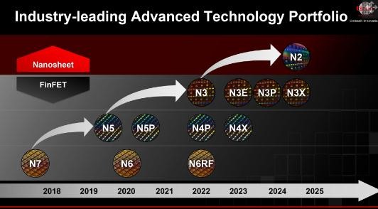 對于 2nm 芯片(N2),臺積電重申其將于 2025 年實現量產。2nm 芯片是臺積電的一個重大節點,該工藝將會采用納米片晶體管(Nanosheet),取代鰭式場效應晶體管(FinFET),這意味著臺積電工藝正式進入 GAA 晶體管時代。其中,2nm 芯片相較于 3nm 芯片,在相同功耗下,速度快 10~15%。在相同速度下,功耗降低 25~30%。