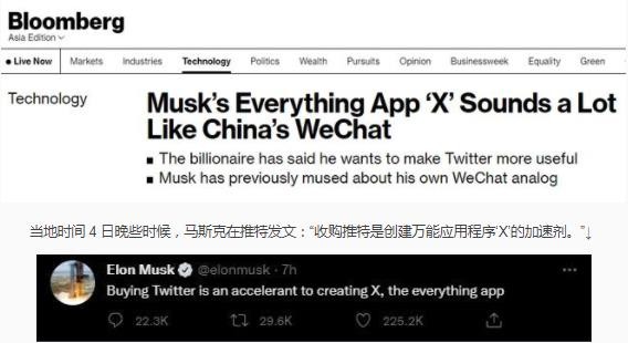 “馬斯克的萬能應用程序‘X’聽起來很像中國的微信。”美國彭博社當地時間 4 日以此為題對馬斯克收購推特事件進行了報道,并提到了中國手機應用程序——微信。