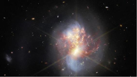 最近美國國家航空航天局(NASA)旗下的詹姆斯·韋伯太空望遠鏡拍攝到星系碰撞中正在發生的恒星形成畫面。