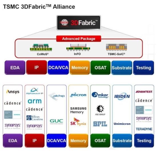 臺積電的 3DFabric 聯盟匯集了電子設計自動化(EDA)工具的開發者、知識產權供應商、合同芯片設計者、存儲器制造商、先進的基材生產商、半導體裝配和測試公司以及用于測試和驗證的設備制造集團。該聯盟目前有 19 個成員,但隨著時間的推移,預計會有更多新成員加入。