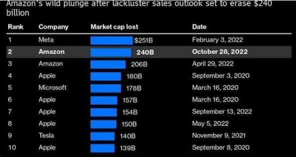 疫情曾幫助亞馬遜的業務迅速增長,并在大約一年前將其市值推高至 1.88 萬億美元的峰值。但隨著經濟增長放緩,加上宏觀經濟形勢不明朗,其股價今年已下跌約 38%。亞馬遜創始人杰夫?貝索斯(Jeff Bezos)曾是世界首富,目前排名降至第三。