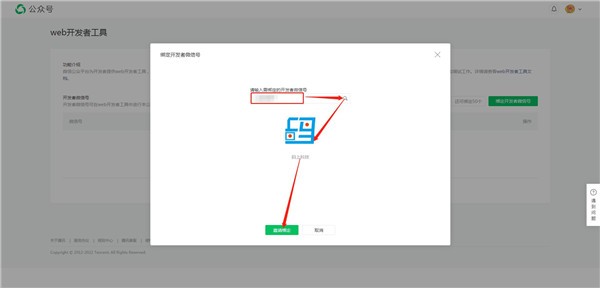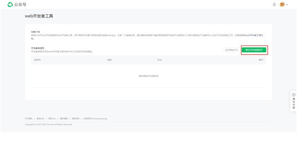 3.進入到Web開發者工具菜單里之后,我們就可以點擊綁定開發者微信號按鈕來添加開發者,每個微信公眾號可以添加50個開發者。