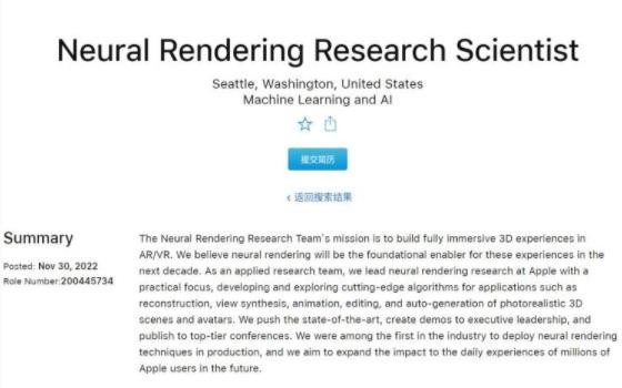 據蘋果官網顯示,其位于西雅圖的神經渲染研究團隊正在招募一位神經渲染研究科學家。