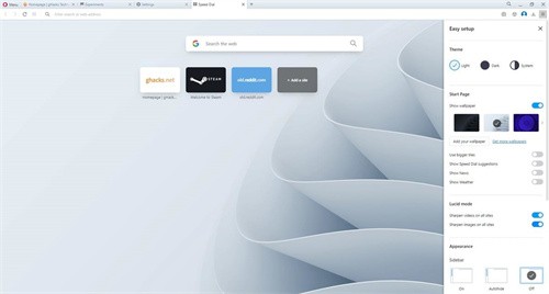 當(dāng)然,你也可以從瀏覽器的設(shè)置頁面找到這些選項(xiàng):opera://settings/ lucidMode