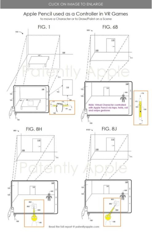 根據美國商標和專利局(USPTO)公示的清單,蘋果今天獲得了一項關于 Apple Pencil 的技術專利。根據專利描述,Apple Pencil 可以和混合現實頭顯、iPad、Mac 顯示器等設備進行交互和操作,可以充當 VR 游戲的控制器。