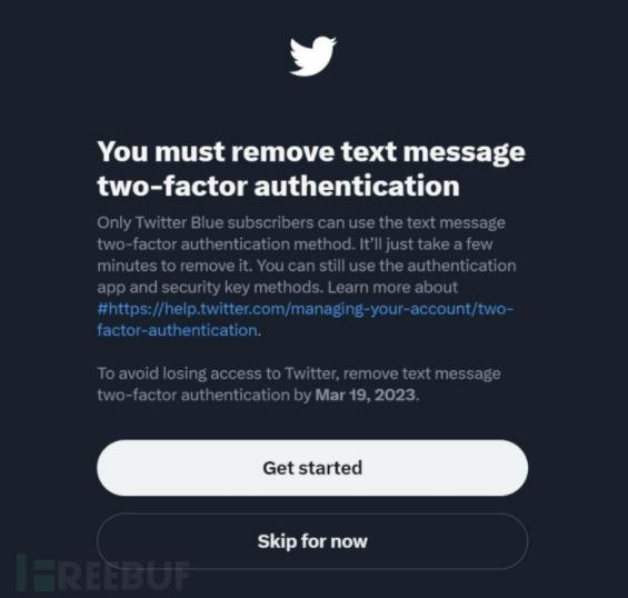 3 月 20 日開始,不再支持普通用戶基于短信的雙因素身份驗證(2FA)方式,只有購買 Twitter Blue 服務的訂閱用戶才能繼續使用。