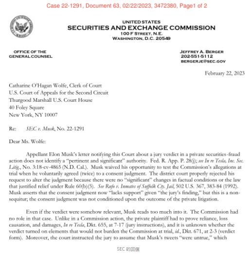 本月初,馬斯克在特斯拉股東發起的集體訴訟中取得勝利。美國舊金山陪審團裁定,馬斯克的私有化推文沒有違反特定證券法,不需要為誤導投資者承擔責任。馬斯克在紐約第二巡回上訴法院提起上訴,試圖撤銷與 SEC 和解協議的部分條款。馬斯克的律師稱,股東訴訟的判決應該在巡回上訴法院的審判中得到考慮。