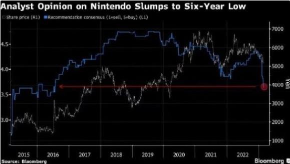 在高盛下調評級后,華爾街分析師對任天堂的平均預期降至 2016 年 7 月以來的最低水平。受此影響,該股周二一度下跌 1.4%,有可能創下 2021 年 12 月以來的最低收盤價。