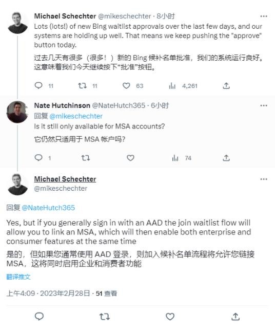 你還在候補名單中嗎?微軟必應副總裁 Michael Schecter 表示在過去幾天批準了大量候補用戶提交的測試申請,而且整個系統運行良好。今后將會邀請更多用戶測試新版必應。