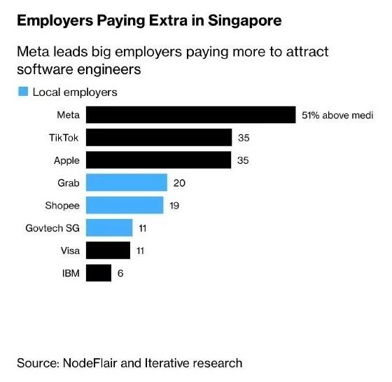 另外,新加坡政府開(kāi)始收緊海外人員工作簽證,因此在一些科技公司,招聘中低層級(jí)的員工難度越來(lái)越大。