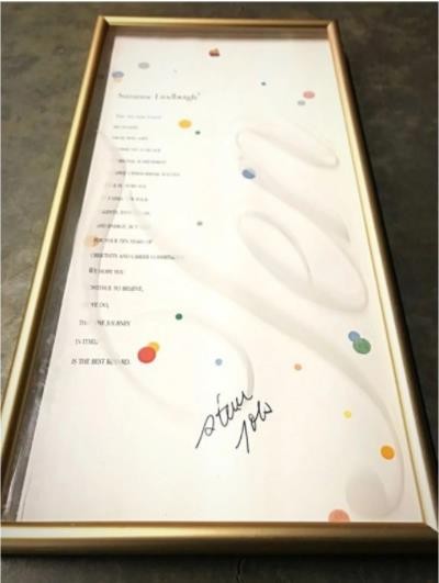 這個獎牌上有喬布斯的簽名和一段鼓勵性的話:“我們希望你繼續(xù)相信,就像我們一樣,旅途本身就是最好的回報。”