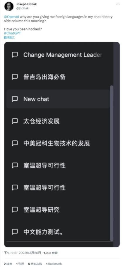 本次事件自本周一開始,用戶反饋在聊天記錄中顯示了來自于他人的 ChatGPT 聊天對話。IT之家翻譯阿爾特曼的推文內(nèi)容如下:“小部分用戶可以看到其他用戶聊天的相關(guān)標(biāo)題”,但他并未就此事展開說明。