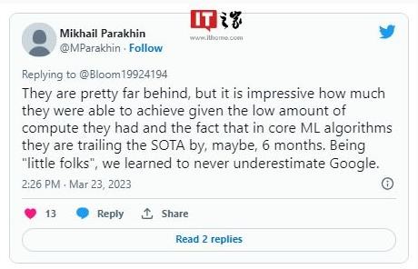 Parakhin 回答說,在他看來,谷歌 Bard 與必應聊天相比“遠遠落后”。他還說,“考慮到他們所擁有的計算資源很少”,以及“在核心機器學習算法方面他們落后于最先進水平大約 6 個月”,他們能夠取得這樣的成果“令人印象深刻”。我們是“小家伙”,我們學會了永遠不要低估谷歌。