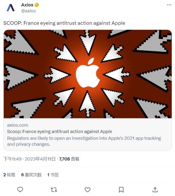 據美國新聞網站 Axios 稱,法國競爭管理局很可能很快對蘋果公司進行反壟斷調查,調查內容涉及此前相關團體對蘋果應用程序跟蹤政策變化的投訴。