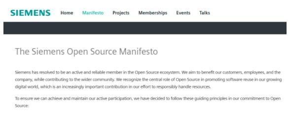 西門子日前在官網(wǎng)發(fā)布了一則《西門子開源宣言》,決心成為開源生態(tài)系統(tǒng)中積極可靠的成員。