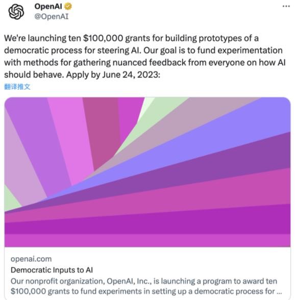 與此同時,OpenAI 周四表示,將從一只 100 萬美元(IT之家備注:當前約 708 萬元人民幣)基金中拿出 10 筆等額撥款,每筆 10 萬美元(當前約 70.8 萬元人民幣),用于民主進程的實驗,以確定如何管理 AI 軟件,以解決偏見和其他問題。