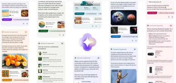 谷歌建議人工智能搜索可以將復(fù)雜的搜索分解成更小的部分,為特定問題提供快速提示,在網(wǎng)購過程中,提供各種相關(guān)的選購因素。