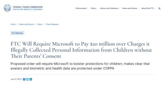 微軟將向美國聯邦貿易委員會(FTC)支付 2000 萬美元(IT之家備注:當前約 1.42 億元人民幣)的和解金,以解決該公司違反美國《兒童在線隱私保護法》(COPPA)的指控。