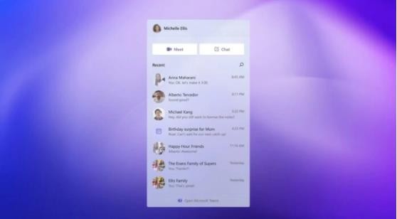 Chat 是 Win11 系統上的 Teams 輕量整合版本,用戶只需單擊一下即可輕松與朋友和家人保持聯系。