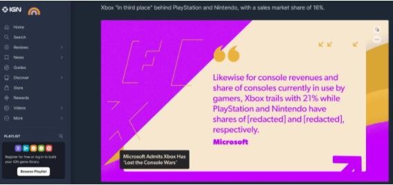 在微軟與聯邦貿易委員會就“收購動視暴雪一案”的法庭訴訟首日,微軟在法庭中承認“Xbox 已經輸掉了主機戰爭,而競爭對手有望繼續主導市場”。