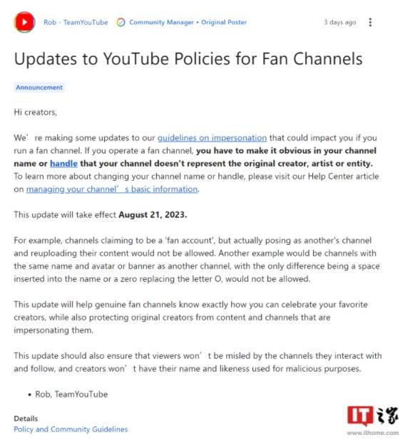 YouTube 近日宣布將更新其打擊仿冒賬戶的政策,進一步根除高仿賬戶對用戶體驗的負面影響。相關政策將于 8 月 21 日起生效。