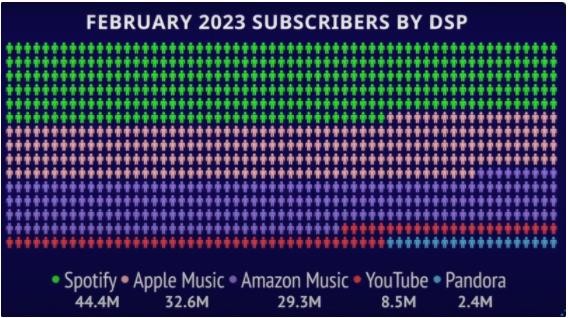 Spotify 是全球最大的音樂流媒體服務,今年 3 月宣布其全球訂閱用戶數達到了 2.1 億,其中美國市場占比約為 25%。Spotify 在美國市場上仍然保持著領先地位,但 Apple Music 緊追其后。