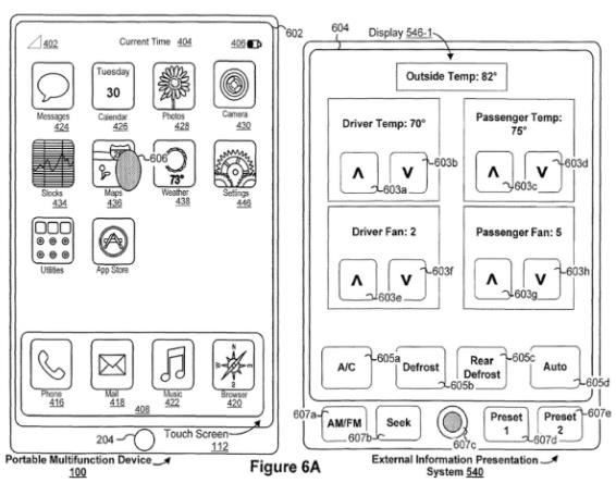 這項技術(shù)專利名為《同步兩個以上屏幕的設(shè)備、方法和圖形用戶界面》,方便在車內(nèi)環(huán)境下,乘客可以通過同步的 iPhone、iPad 和 Mac 設(shè)備,訪問車機系統(tǒng)。